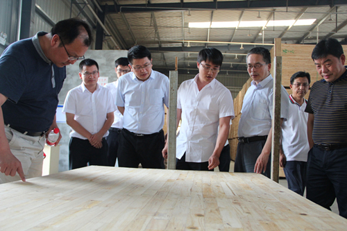 在猇亭區(qū)政府黨組成員、三峽保稅物流中心管理辦主任李祥春,區(qū)經(jīng)信局局長劉榮靜,宜昌源森木業(yè)有限公司董事長譚佳丹等陪同下,陸培祥一行仔細(xì)查看了公司展板、成品車間等處。